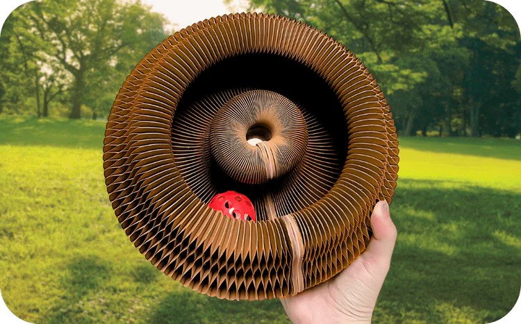 Sicuro per le zampette e realizzato in cartone ondulato a doppio spessore: solido, ecologico e resistente.